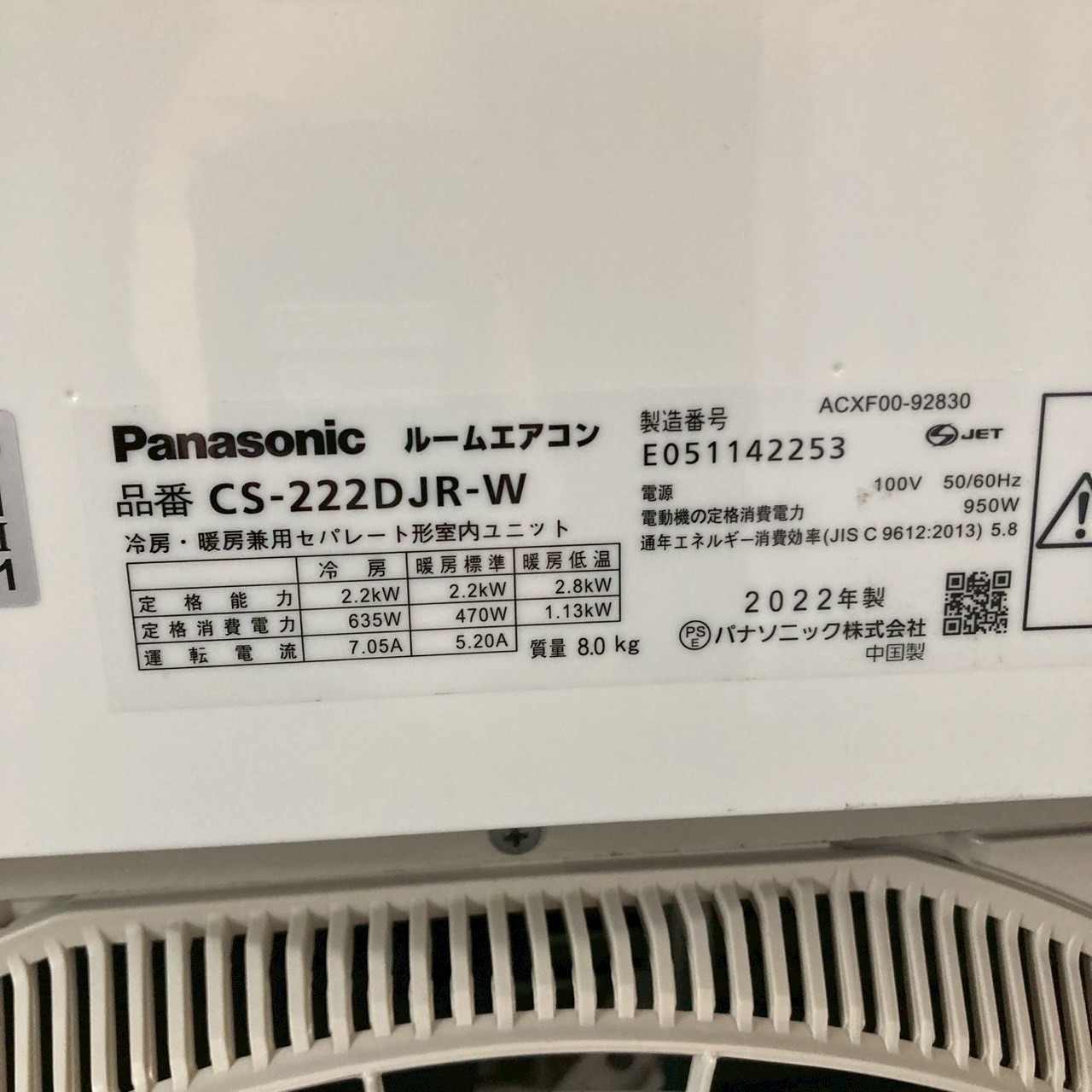 【中古エアコン】K06570 パナソニック 2022年製 CS-222DJR 主に6畳用