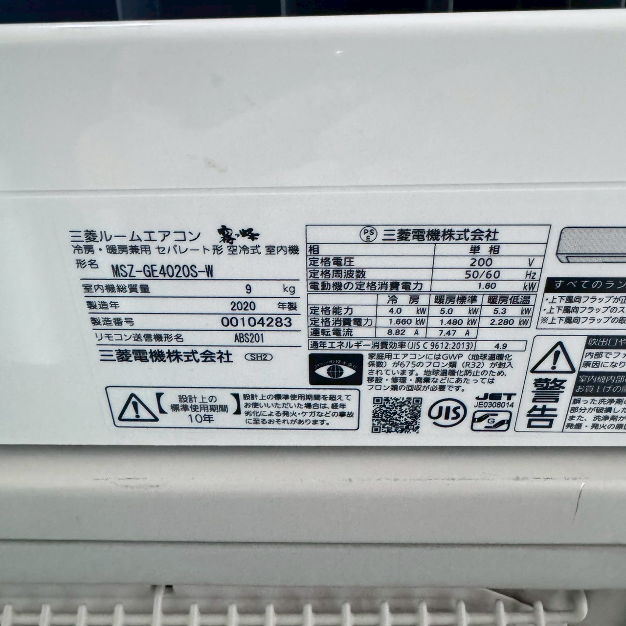 【中古エアコン】K07009 三菱 2020年製 MSZ-GE4020S 主に14畳用