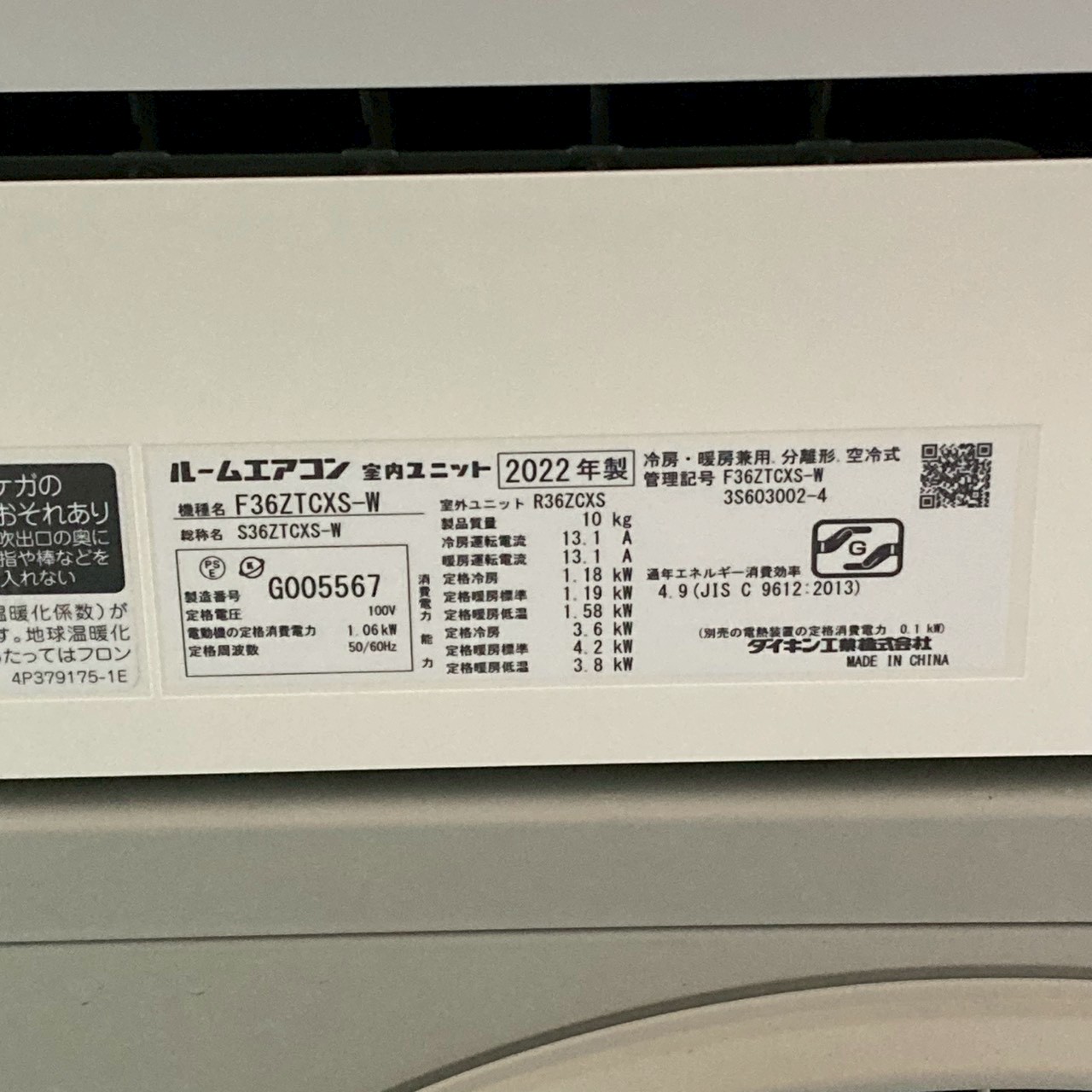 【中古エアコン】K07021 ダイキン 2022年製 F36ZTCXS 主に12畳用