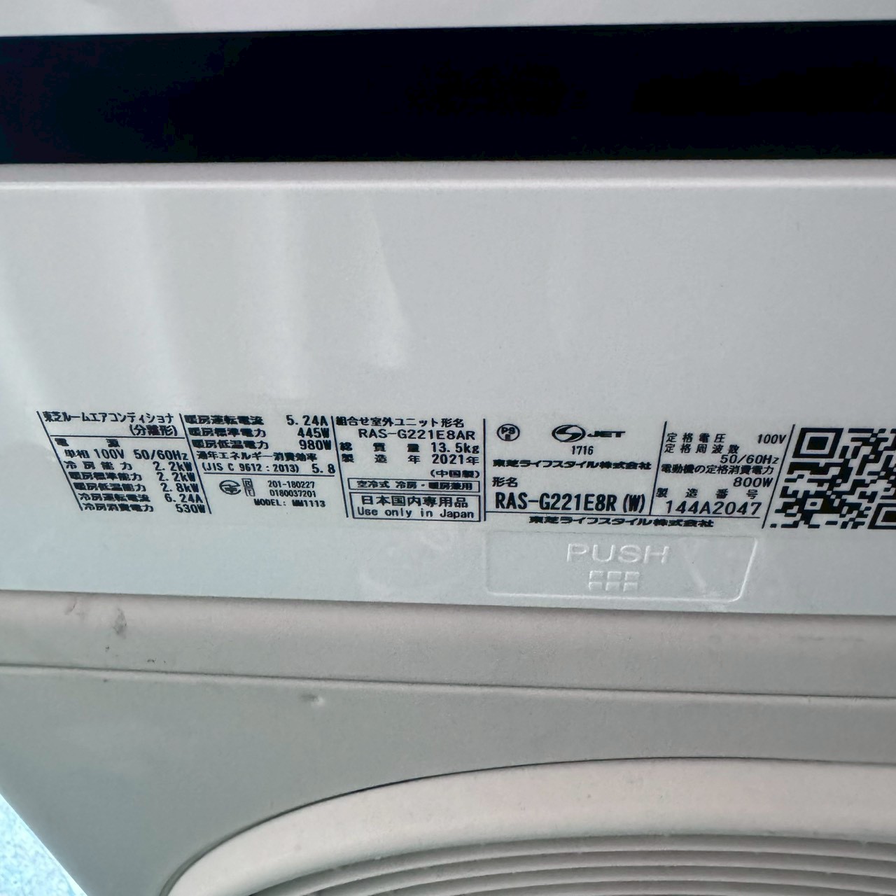 【中古エアコン】K07023 東芝 2021年製 RAS-G221E8R 主に6畳用