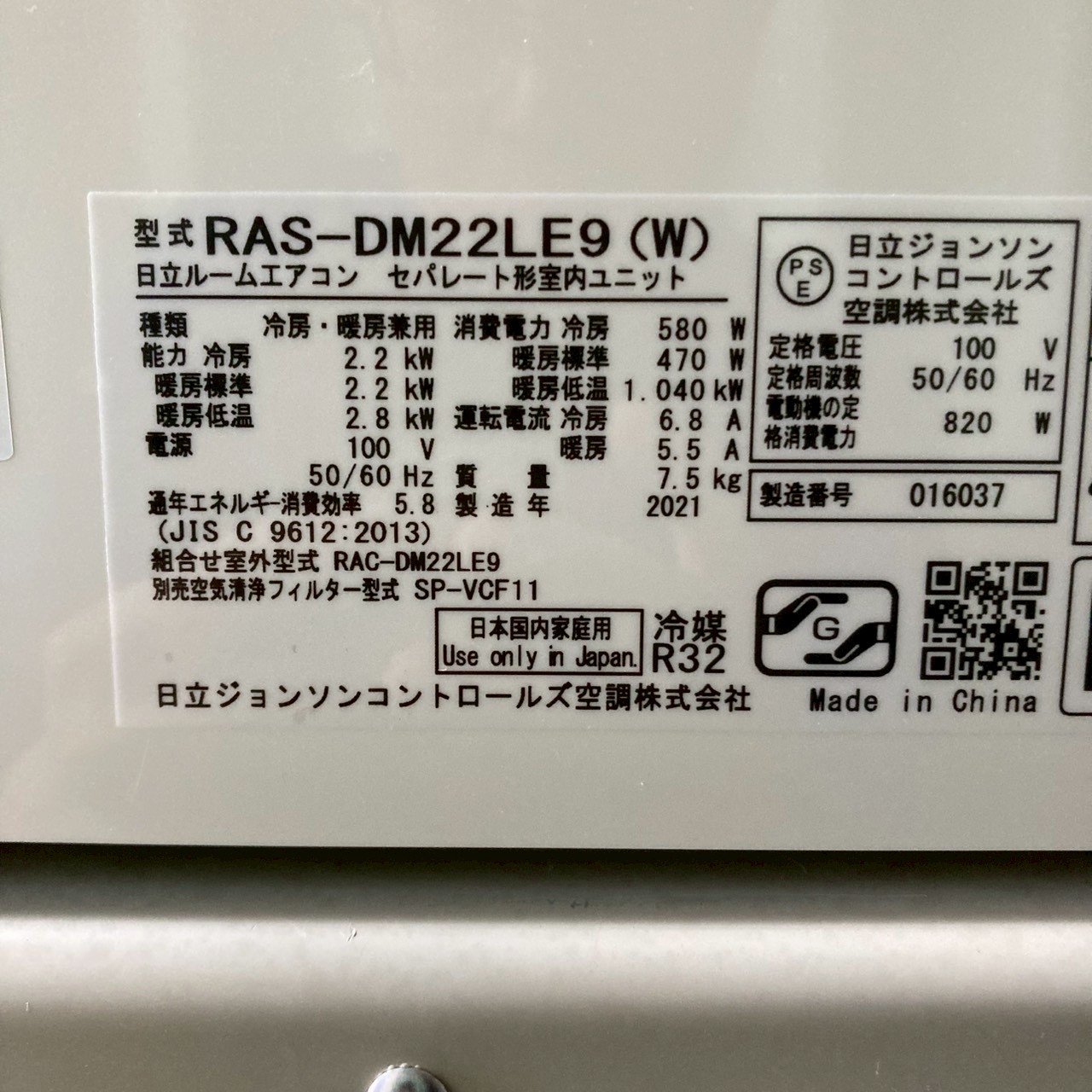 【中古エアコン】K07031 日立 2021年製 RAS-DM22LE9 主に6畳用