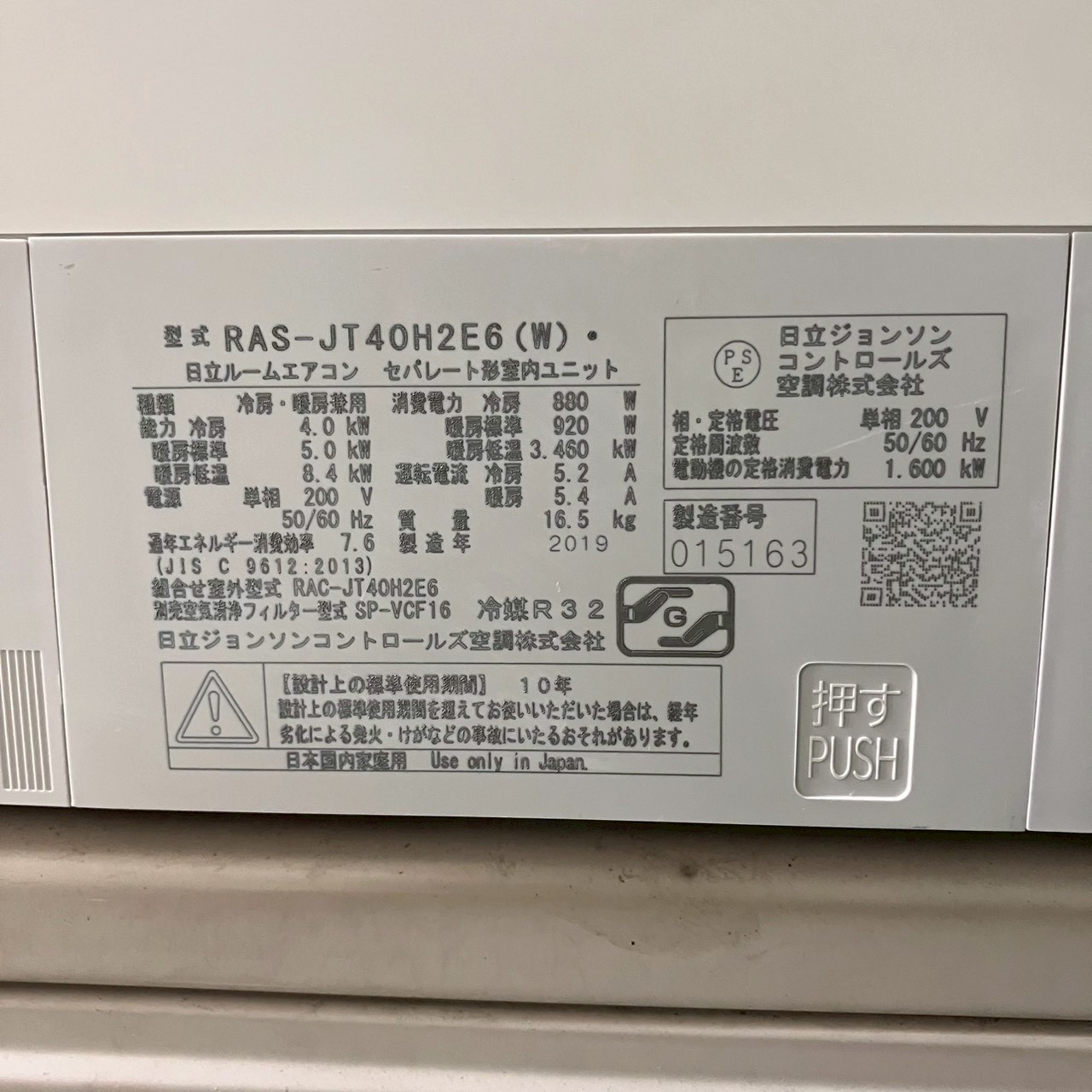 【中古エアコン】K07039 日立 2019年製 RAS-JT40H2E6 主に14畳用