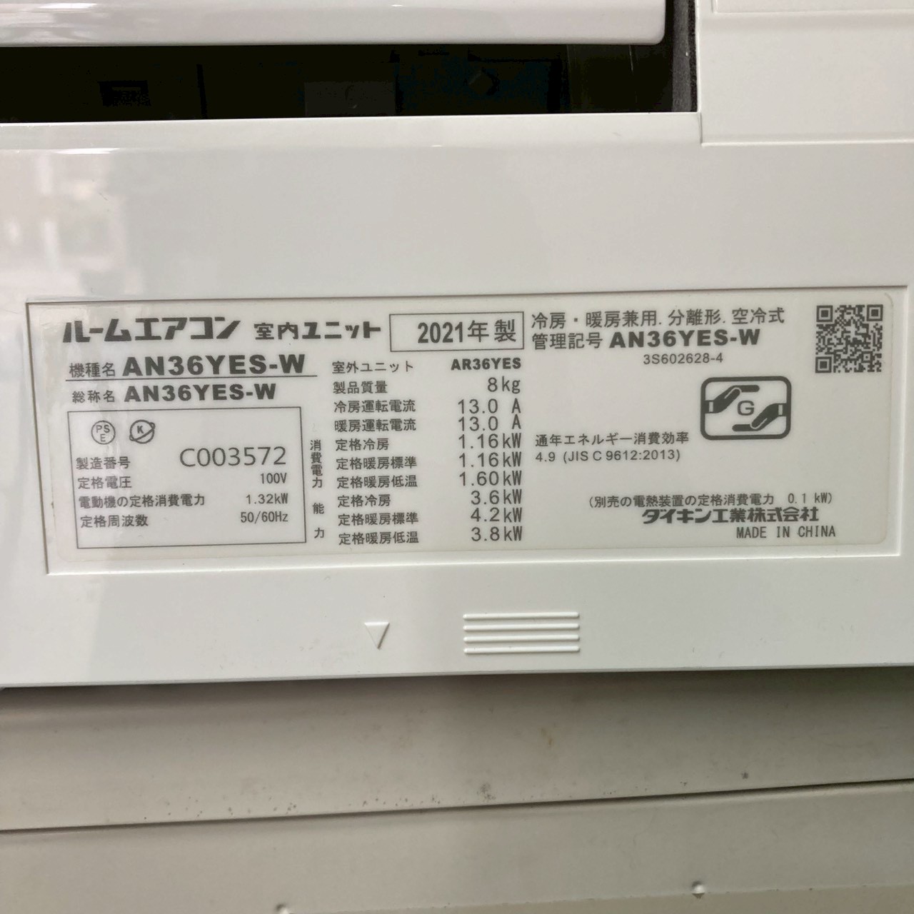 【中古エアコン】K07047 ダイキン 2021年製 AN36YES 主に12畳用