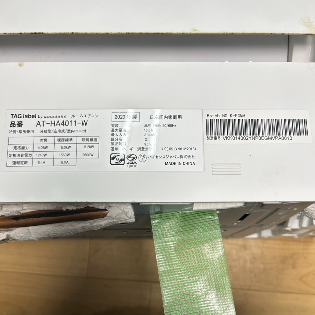 【中古エアコン】K07064 ハイセンス 2020年製 AT-HA4011 主に14畳用