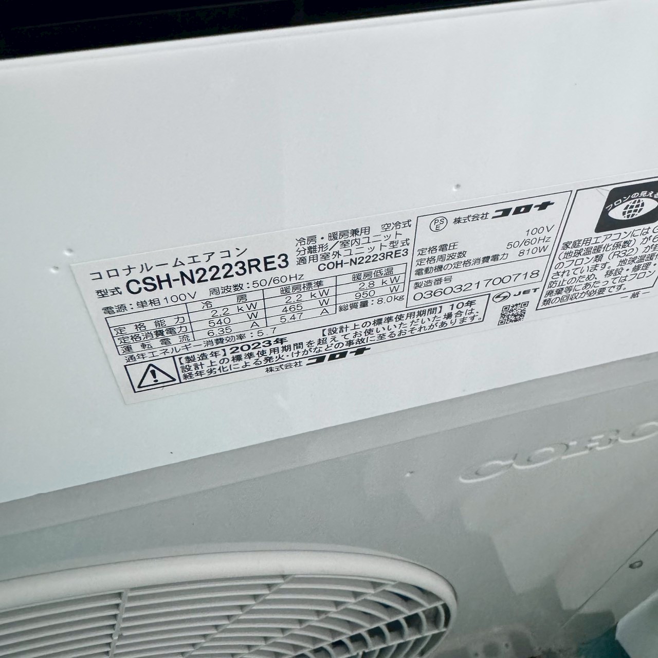 【中古エアコン】K07070 コロナ 2023年製 CSH-N2223RE3 主に6畳用