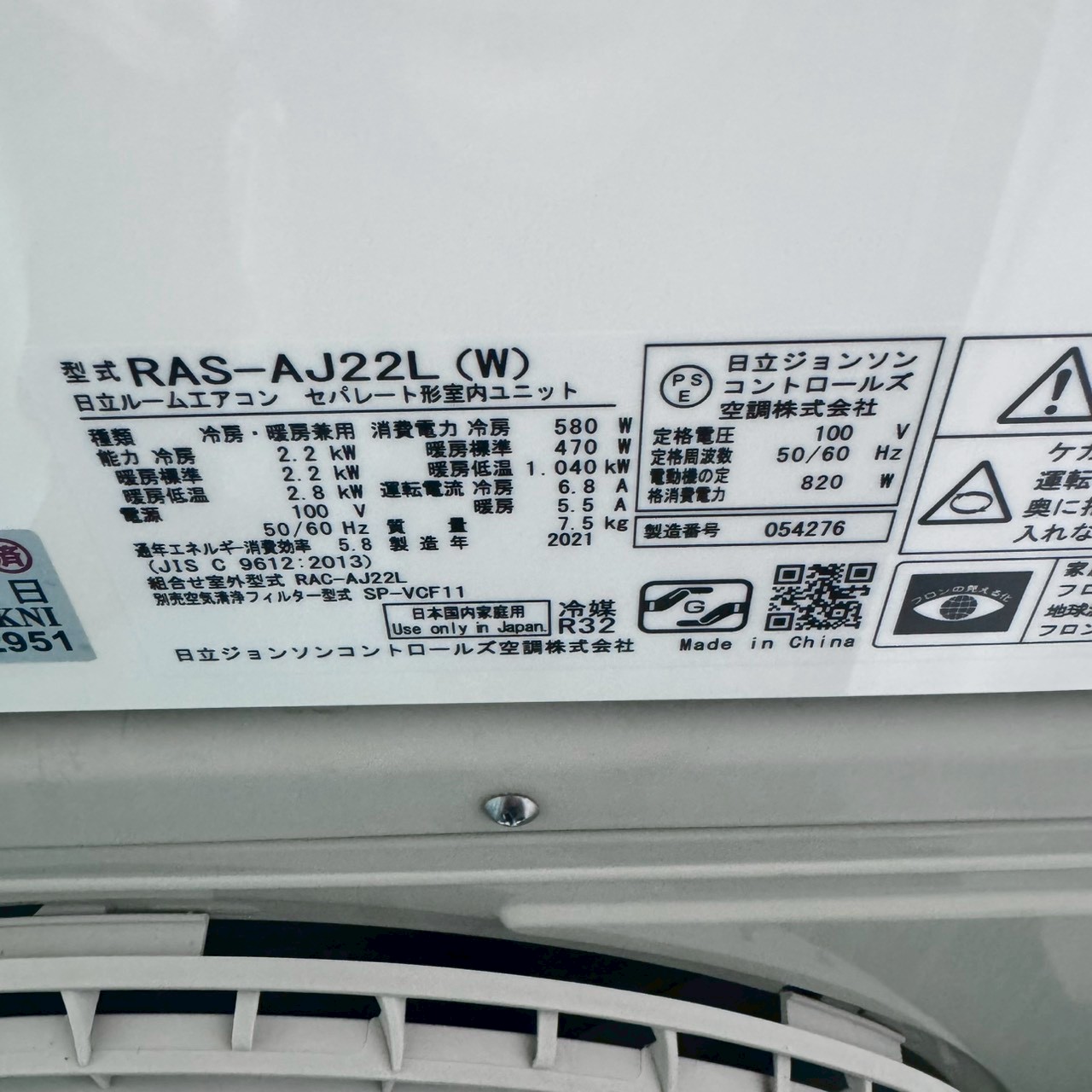 【中古エアコン】K07077 日立 2021年製 RAS-AJ22L 主に6畳用