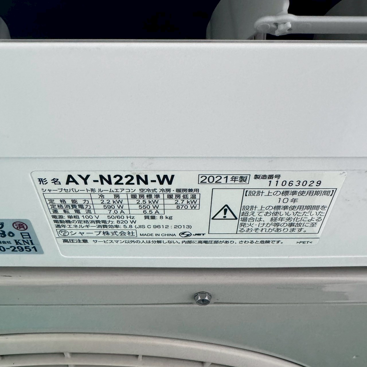 【中古エアコン】K07078 シャープ 2021年製 AY-N22N 主に6畳用