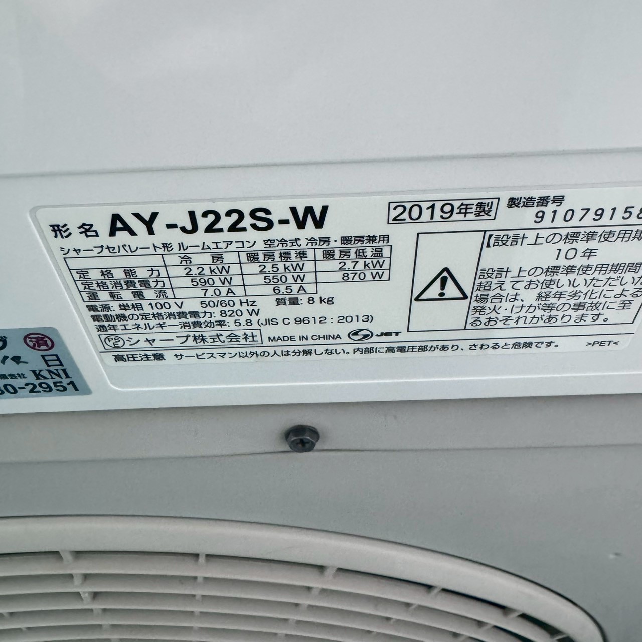 【中古エアコン】K07106 シャープ 2019年製 AY-J22S 主に6畳用