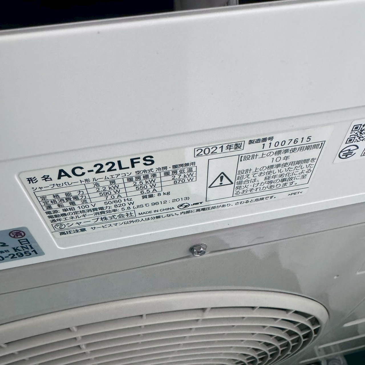 【中古エアコン】K07131 シャープ 2021年製 AC-22LFS 主に6畳用
