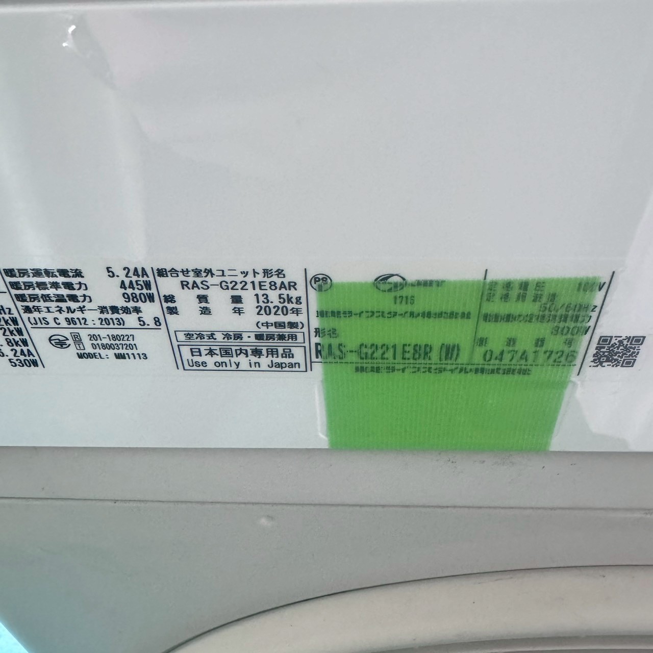 冷房能力2.2KW / 暖房能力2.2W【エアコン保障のご注意】工事保障 1年間保証はいかなる場合も、私どもが取付工事をさせて頂いた場合のみ適応となります。商品のみご購入の場合は、全ての保証対象外となります。予めご了承くださいませ。