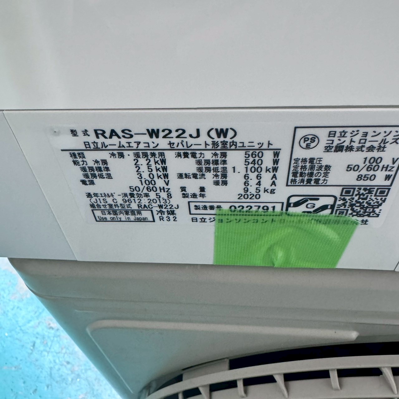 【中古エアコン】K07152 日立 2020年製 RAS-W22J 主に6畳用