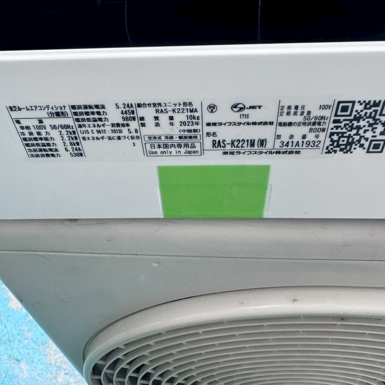 【中古エアコン】K07154 東芝 2023年製 RAS-K221M 主に6畳用