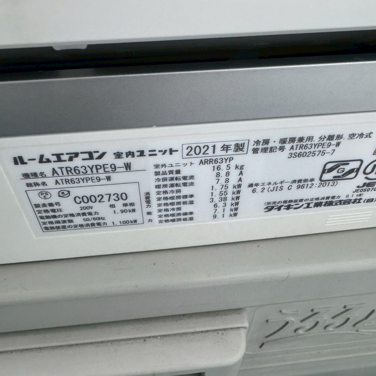 【中古エアコン】K07163 ダイキン 2021年製 ATR63YPE9 主に20畳用