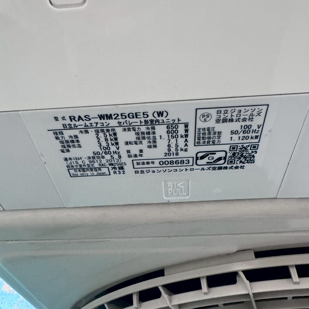【中古エアコン】K07175 日立 2018年製 RAS-WM25GE5 主に8畳用